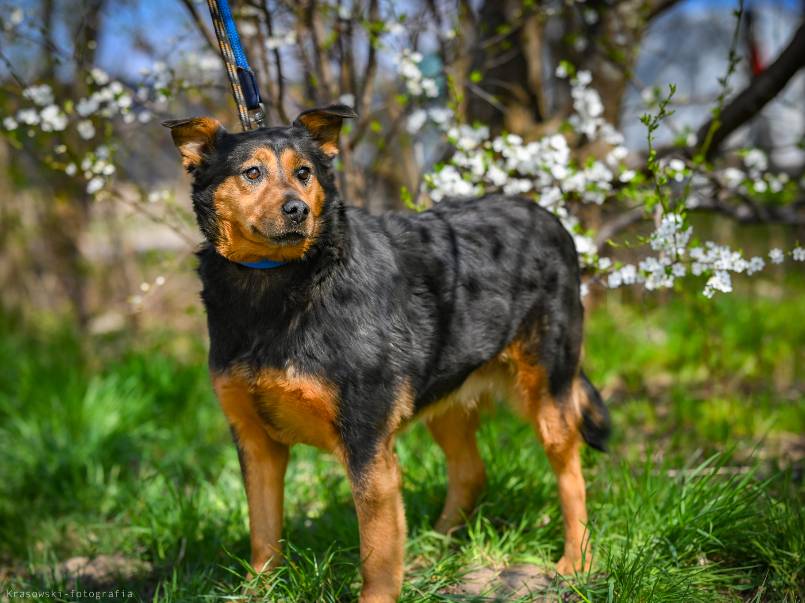 Jest to około 2 letnia suczka. Względem nowo poznanych osób jest lekko nieufna, jednak z czasem otwiera się i sama zaczepia człowieka domagając się przy tym kontaktu.