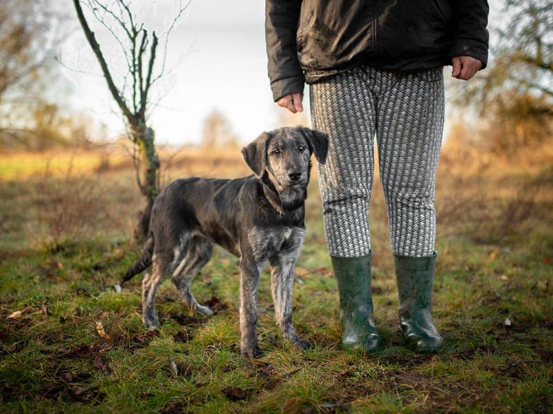 Tak, Majlo jeszcze nie umie idealnie chodzić na smyczy. Ale to tylko kwestia czasu – wystarczy odrobina cierpliwości i serca. On bardzo chce się nauczyć i cieszy go każdy trening z człowiekiem. Bo niczego nie pragnie bardziej niż Twojej obecności.