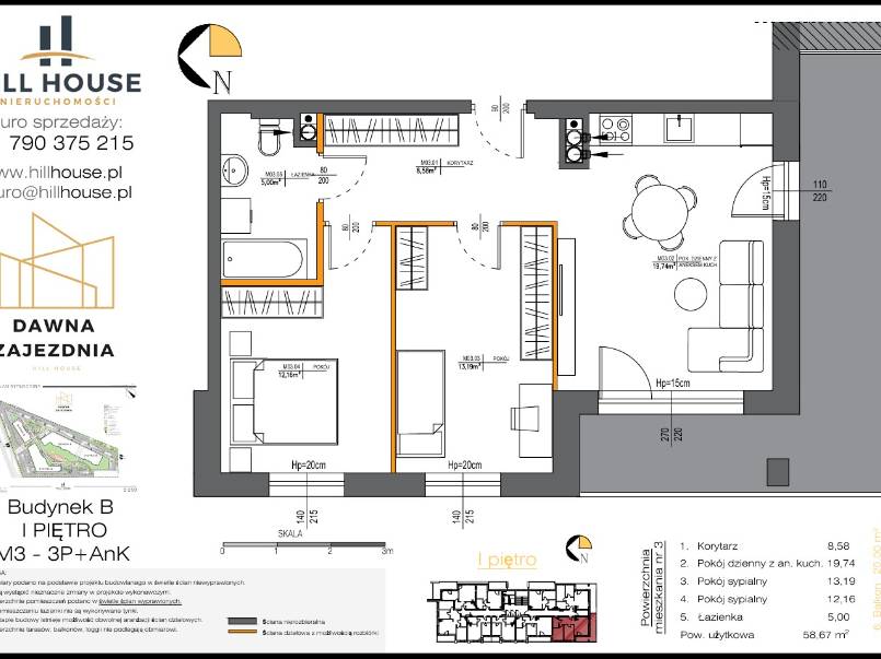 To mieszkanie o powierzchni 58,67 m² zostało zaprojektowane z myślą o wygodzie, funkcjonalności i codziennym komforcie.